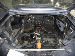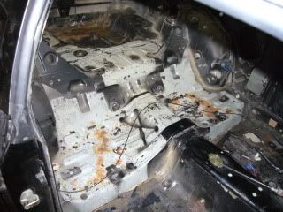 With the interior hollow, I start knocking out all the sound deadening. The stuff in the hatch, and under the rear seat came out really nice. The passenger floor turned out not to be easy. After finishing the passenger side, I called it a night.